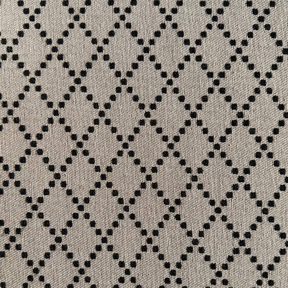 Este tejido presenta un dibujo de puntos dispuestos en rombos que aporta orden y ligereza visual. Su superficie, de tacto estructurado y presencia sobria, introduce un ritmo discreto que se integra con naturalidad en cualquier ambiente. Una opción versátil para quienes buscan armonía sin estridencias.